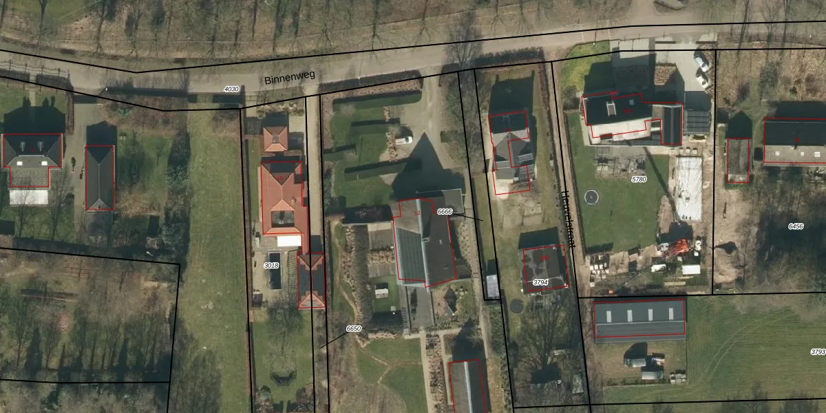Het perceel waarop Binnenweg 12 staat heeft een oppervlakte van 8000 m². Dit is een zeer groot perceel. De perceeloppervlakte wordt geregistreerd door het Kadaster. Gedetailleerde informatie over de maten van dit perceel kunt u vinden in het rapport Kadastrale kaart met maatvoering van Binnenweg 12.