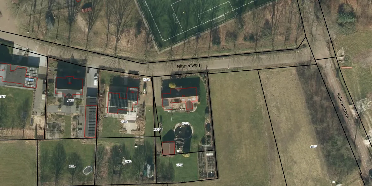 Binnenweg 18 is gelegen op kadastraal perceel HEE02B7910. Deze kadastrale aanduiding is uniek en wordt gebruikt door het Kadaster om eigendomsrechten en andere zakelijke rechten vast te leggen. Het perceel maakt onderdeel uit van de kadastrale gemeente Heesch.