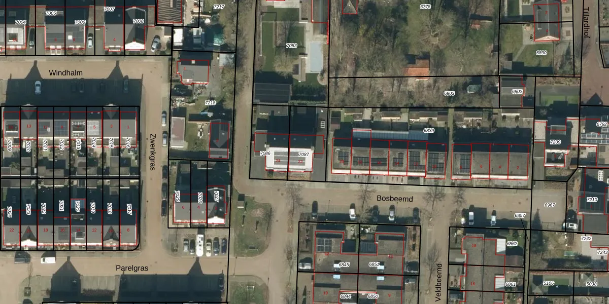 Het perceel waarop het adres ligt is HEE02-A-7087. De afkorting 'HEE02' staat voor kadastrale gemeente Heesch. De gemiddelde perceelgrootte in Heesch is 2870,1 m². Dit perceel is kleiner: de perceeloppervlakte bedraagt 310 m². Het grootste perceel in de kadastrale gemeente is 50,1 ha. Het kleinste perceel heeft een oppervlakte van 0 m². Op het perceel bevinden zich geen andere adressen. In de Basisregistratie Kadaster (BRK) werden de grenzen van het perceel geregistreerd op 26-08-2015.