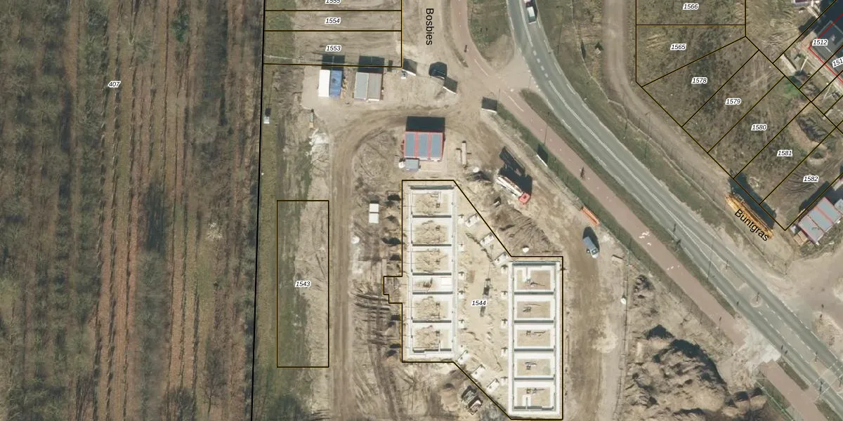 Het perceel waarop Bosbies 41 staat heeft een oppervlakte van 1598 m². Dit is een zeer groot perceel. De perceeloppervlakte wordt geregistreerd door het Kadaster. Gedetailleerde informatie over de maten van dit perceel kunt u vinden in het rapport Kadastrale kaart met maatvoering van Bosbies 41.