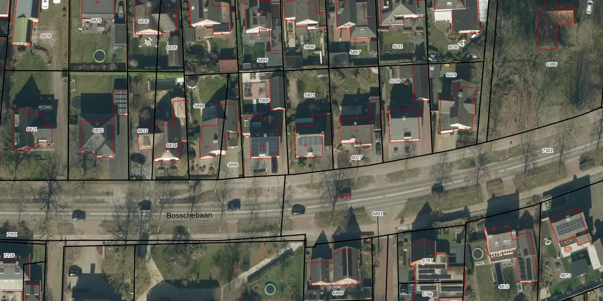Bosschebaan 16 is gelegen op kadastraal perceel HEE02A5901. Deze kadastrale aanduiding is uniek en wordt gebruikt door het Kadaster om eigendomsrechten en andere zakelijke rechten vast te leggen. Het perceel maakt onderdeel uit van de kadastrale gemeente Heesch.