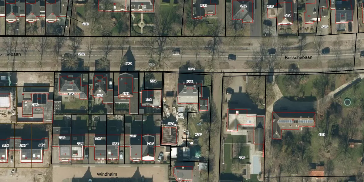 Bosschebaan 17 is gelegen op kadastraal perceel HEE02A7216. Deze kadastrale aanduiding is uniek en wordt gebruikt door het Kadaster om eigendomsrechten en andere zakelijke rechten vast te leggen. Het perceel maakt onderdeel uit van de kadastrale gemeente Heesch.