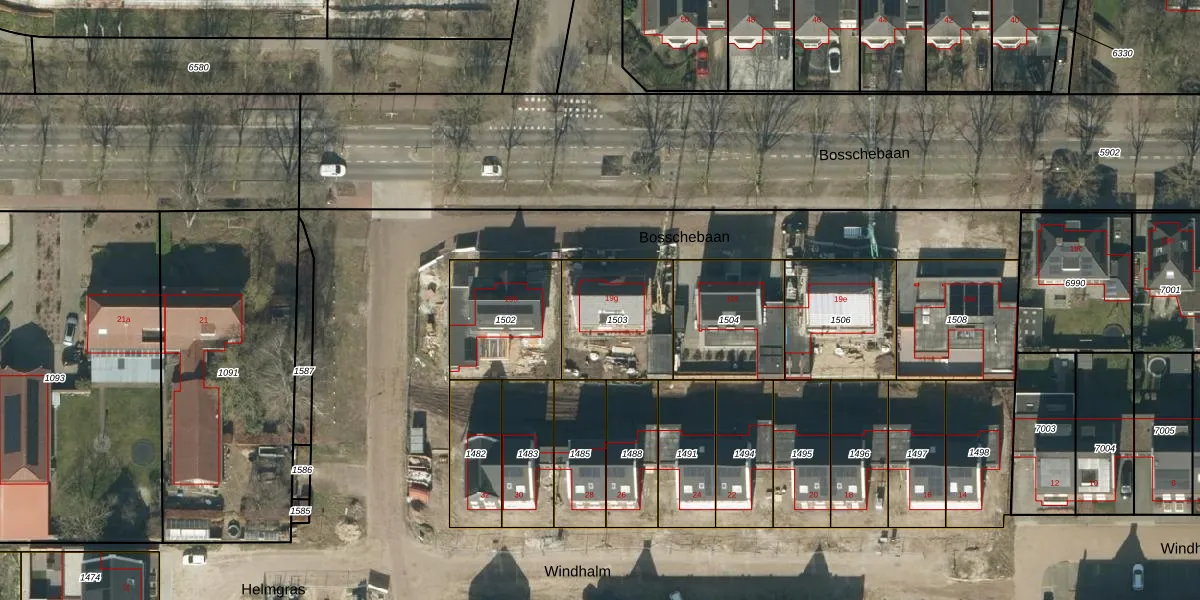 Bosschebaan 19-g is gelegen op kadastraal perceel HEE02F1503. Deze kadastrale aanduiding is uniek en wordt gebruikt door het Kadaster om eigendomsrechten en andere zakelijke rechten vast te leggen. Het perceel maakt onderdeel uit van de kadastrale gemeente Heesch.