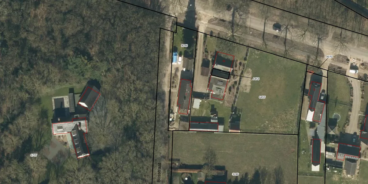 Het perceel waarop Bosstraat 1 staat heeft een oppervlakte van 673 m². Dit is een groot perceel. De perceeloppervlakte wordt geregistreerd door het Kadaster. Gedetailleerde informatie over de maten van dit perceel kunt u vinden in het rapport Kadastrale kaart met maatvoering van Bosstraat 1.