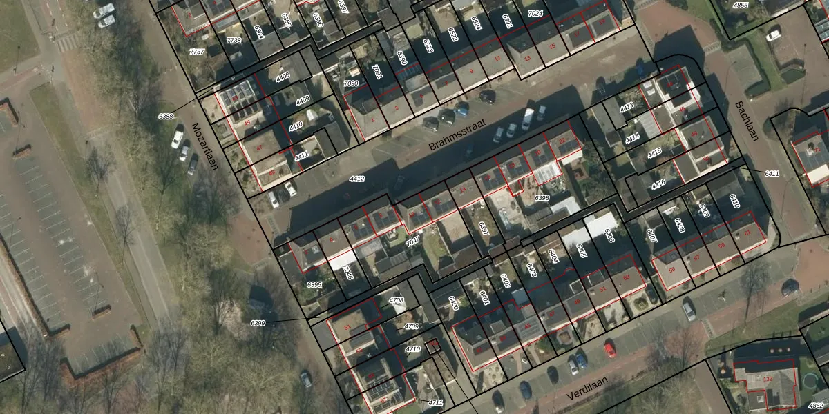 Brahmsstraat 10 is gelegen op kadastraal perceel HEE02B7047. Deze kadastrale aanduiding is uniek en wordt gebruikt door het Kadaster om eigendomsrechten en andere zakelijke rechten vast te leggen. Het perceel maakt onderdeel uit van de kadastrale gemeente Heesch.