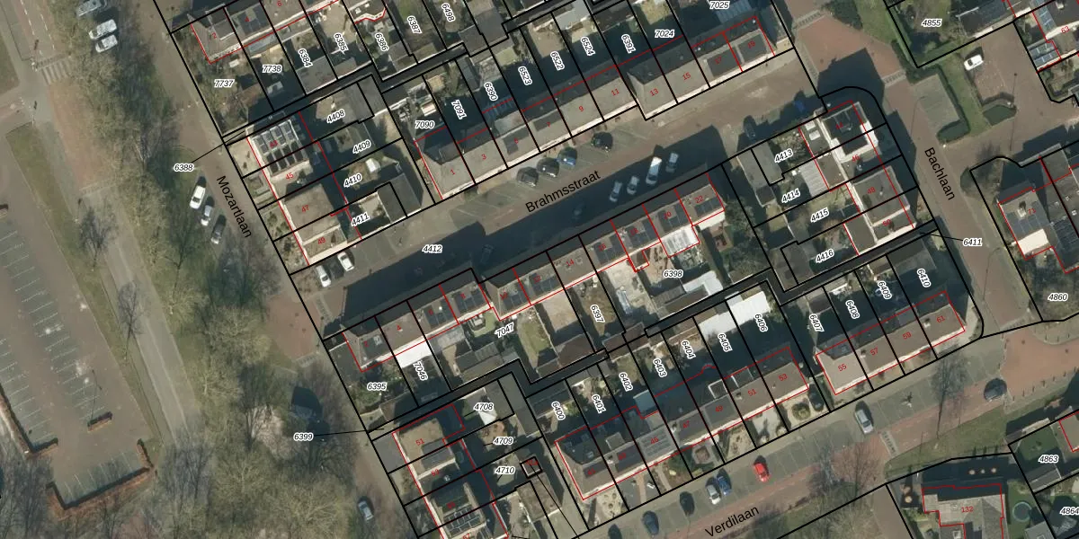 Brahmsstraat 12 is gelegen op kadastraal perceel HEE02B7047. Deze kadastrale aanduiding is uniek en wordt gebruikt door het Kadaster om eigendomsrechten en andere zakelijke rechten vast te leggen. Het perceel maakt onderdeel uit van de kadastrale gemeente Heesch.