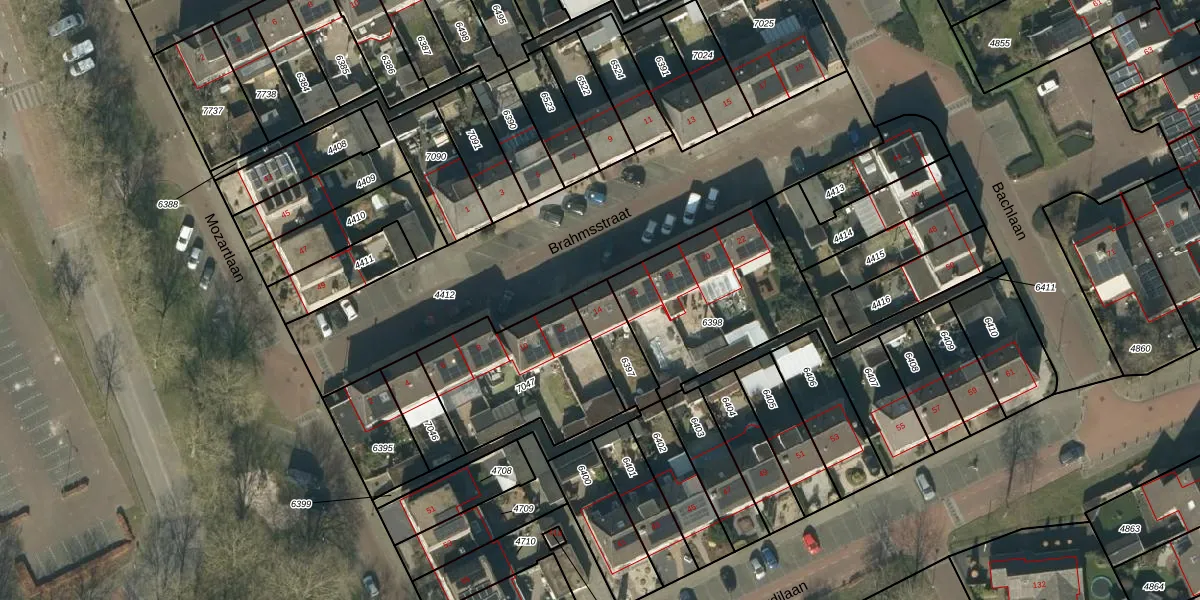 Brahmsstraat 14 is gelegen op kadastraal perceel HEE02B6397. Deze kadastrale aanduiding is uniek en wordt gebruikt door het Kadaster om eigendomsrechten en andere zakelijke rechten vast te leggen. Het perceel maakt onderdeel uit van de kadastrale gemeente Heesch.