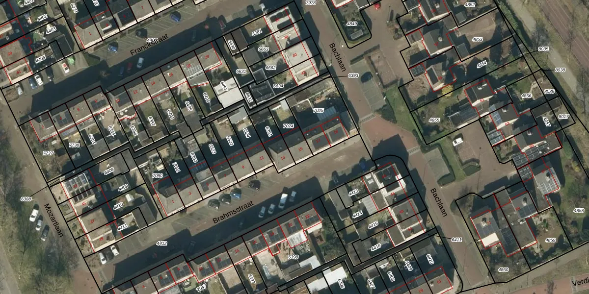 Gebruik de zoekbalk of klik op een perceel voor informatie over de adressen binnen dit perceel.