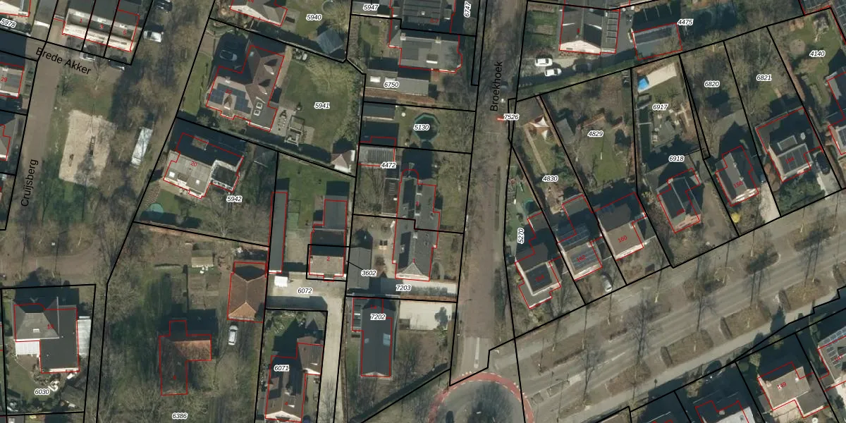 Het perceel waarop Broekhoek 3 staat heeft een oppervlakte van 485 m². Dit is een groot perceel. De perceeloppervlakte wordt geregistreerd door het Kadaster. Gedetailleerde informatie over de maten van dit perceel kunt u vinden in het rapport Kadastrale kaart met maatvoering van Broekhoek 3.