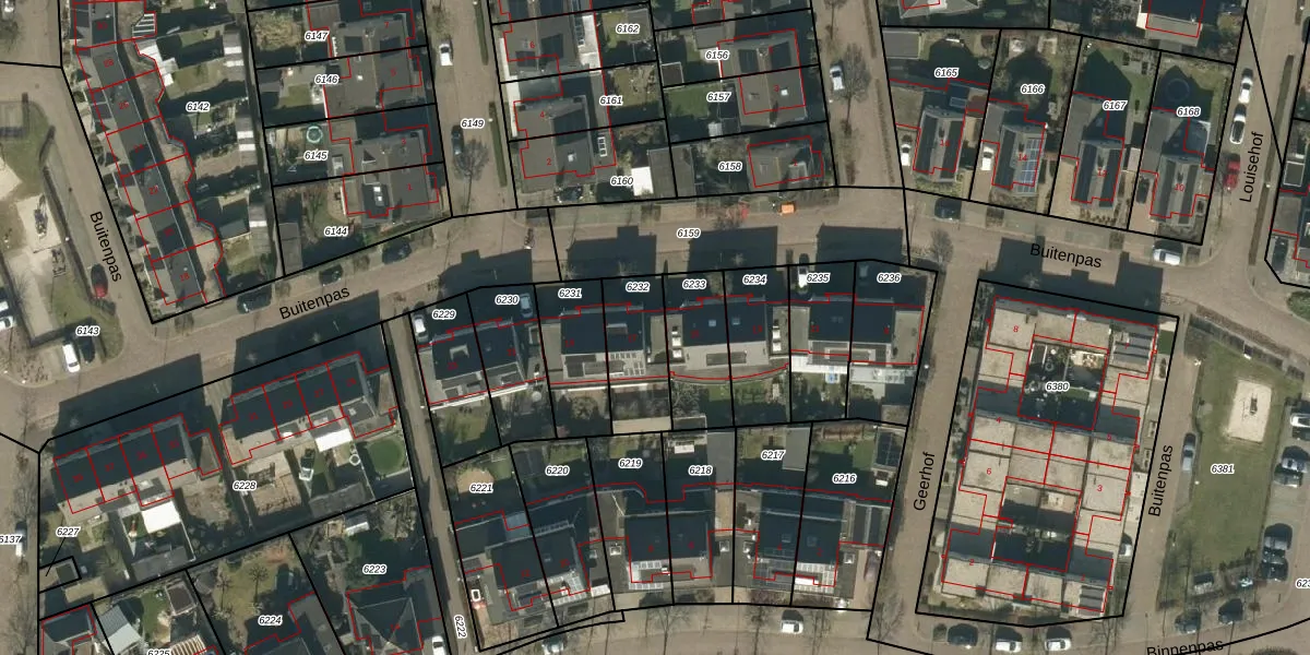 Het perceel waarop Buitenpas 17 staat heeft een oppervlakte van 222 m². Dit is een middelgroot perceel. De perceeloppervlakte wordt geregistreerd door het Kadaster. Gedetailleerde informatie over de maten van dit perceel kunt u vinden in het rapport Kadastrale kaart met maatvoering van Buitenpas 17.