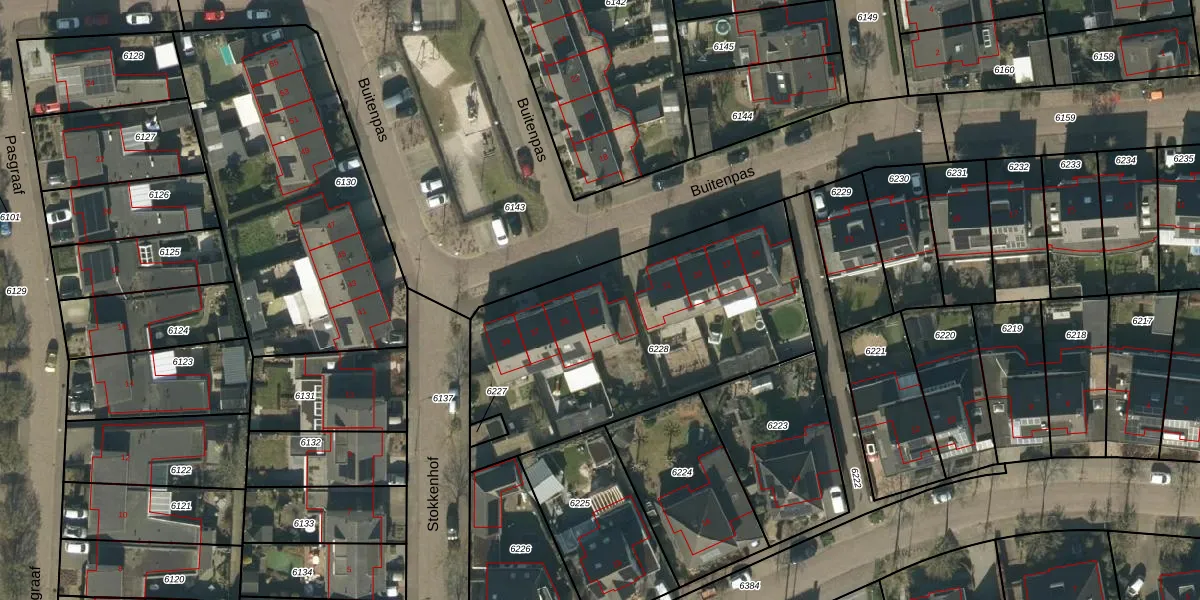 Het perceel waarop Buitenpas 33 staat heeft een oppervlakte van 1510 m². Dit is een zeer groot perceel. De perceeloppervlakte wordt geregistreerd door het Kadaster. Gedetailleerde informatie over de maten van dit perceel kunt u vinden in het rapport Kadastrale kaart met maatvoering van Buitenpas 33.