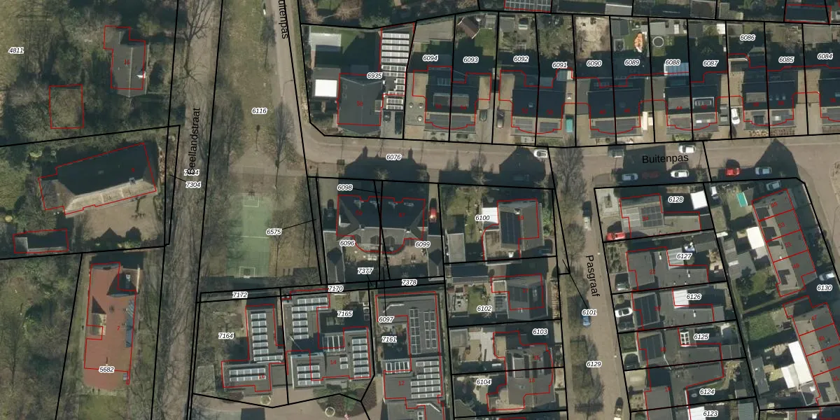 Het perceel waarop Buitenpas 57 staat heeft een oppervlakte van 314 m². Dit is een groot perceel. De perceeloppervlakte wordt geregistreerd door het Kadaster. Gedetailleerde informatie over de maten van dit perceel kunt u vinden in het rapport Kadastrale kaart met maatvoering van Buitenpas 57.