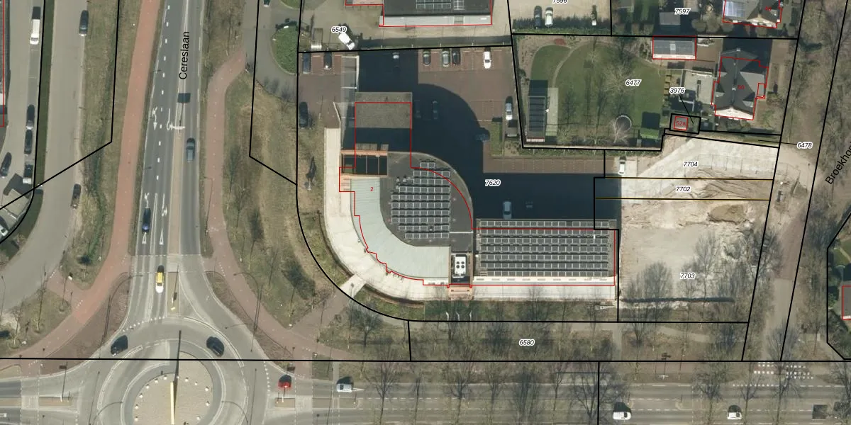 Het perceel waarop Cereslaan 2-s staat heeft een oppervlakte van 4002 m². Dit is een zeer groot perceel. De perceeloppervlakte wordt geregistreerd door het Kadaster. Gedetailleerde informatie over de maten van dit perceel kunt u vinden in het rapport Kadastrale kaart met maatvoering van Cereslaan 2-s.