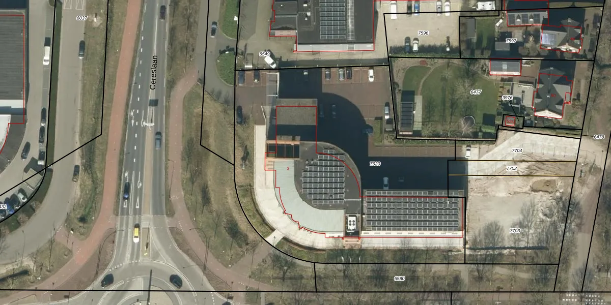 Het perceel waarop Cereslaan 2-u staat heeft een oppervlakte van 4002 m². Dit is een zeer groot perceel. De perceeloppervlakte wordt geregistreerd door het Kadaster. Gedetailleerde informatie over de maten van dit perceel kunt u vinden in het rapport Kadastrale kaart met maatvoering van Cereslaan 2-u.