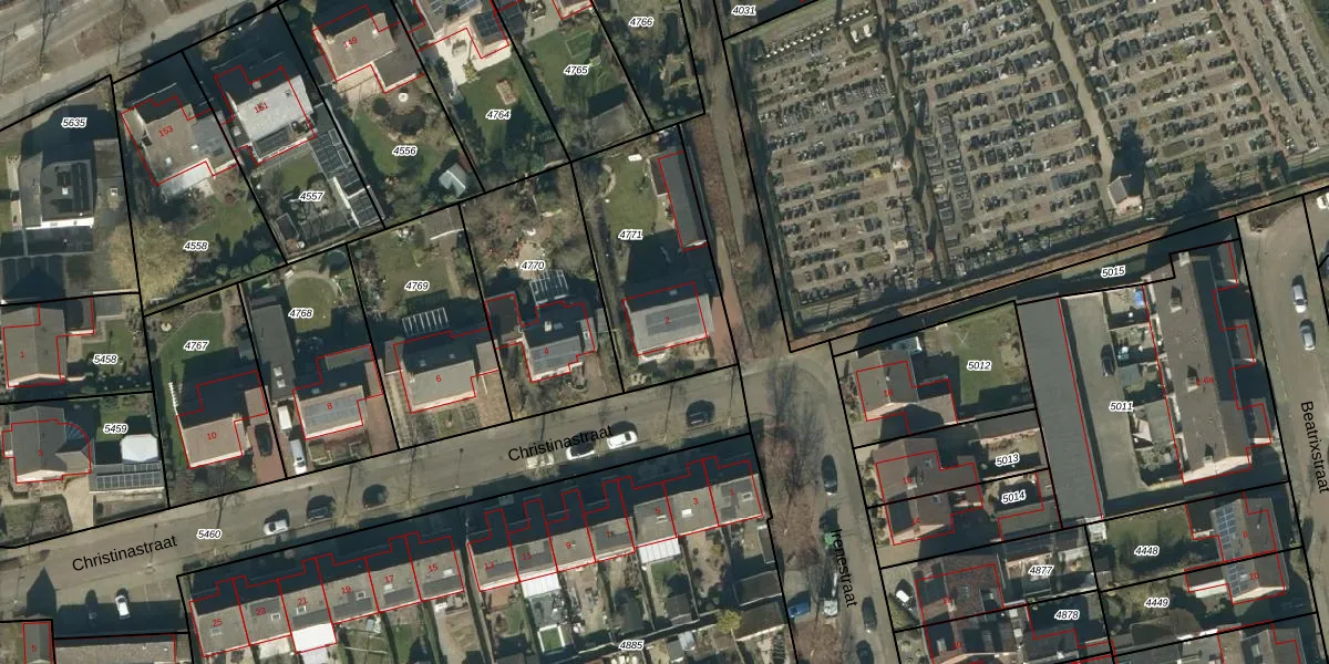 Christinastraat 2 is gelegen op kadastraal perceel HEE02A4771. Deze kadastrale aanduiding is uniek en wordt gebruikt door het Kadaster om eigendomsrechten en andere zakelijke rechten vast te leggen. Het perceel maakt onderdeel uit van de kadastrale gemeente Heesch.