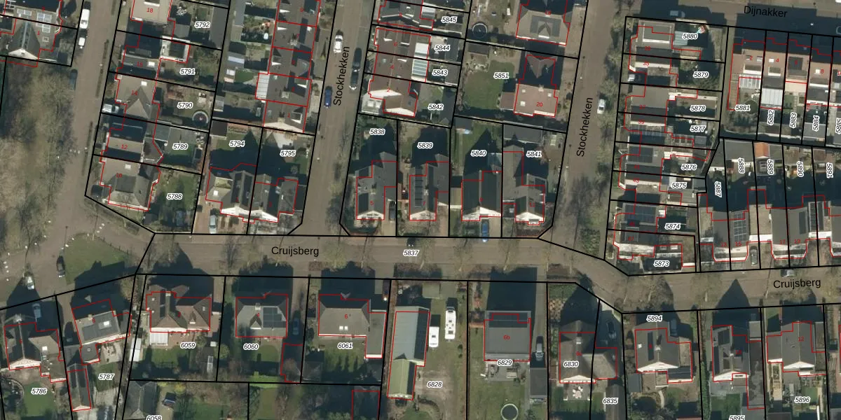 Gebruik de zoekbalk of klik op een perceel voor informatie over de adressen binnen dit perceel.
