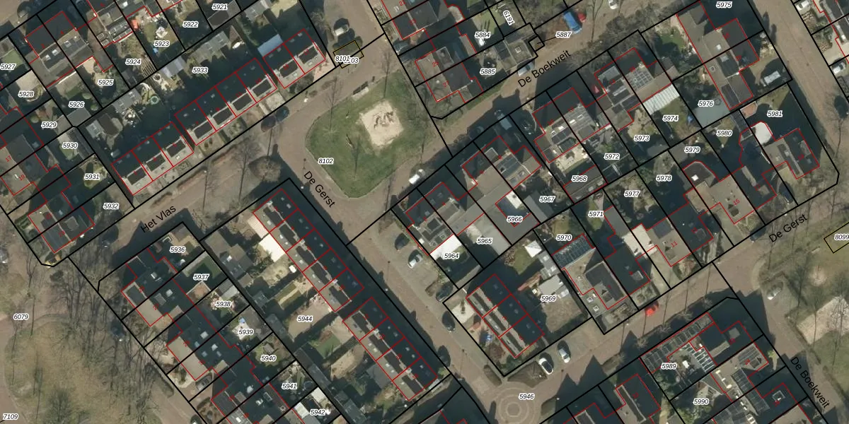 Gebruik de zoekbalk of klik op een perceel voor informatie over de adressen binnen dit perceel.