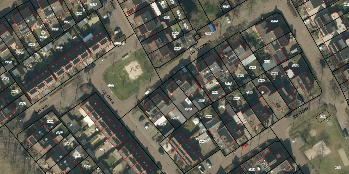 De Boekweit 6 is gelegen op kadastraal perceel HEE02B5966. Deze kadastrale aanduiding is uniek en wordt gebruikt door het Kadaster om eigendomsrechten en andere zakelijke rechten vast te leggen. Het perceel maakt onderdeel uit van de kadastrale gemeente Heesch.