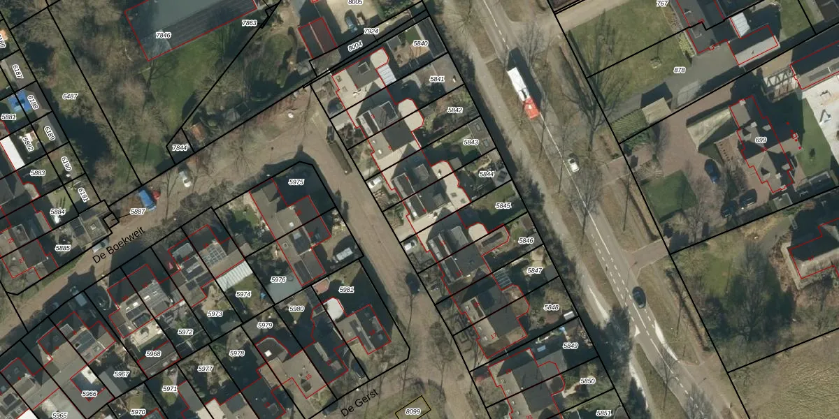 De Boekweit 9 is gelegen op kadastraal perceel HEE02B5844. Deze kadastrale aanduiding is uniek en wordt gebruikt door het Kadaster om eigendomsrechten en andere zakelijke rechten vast te leggen. Het perceel maakt onderdeel uit van de kadastrale gemeente Heesch.