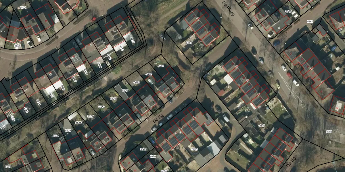 Het perceel waarop De Eg 2 staat heeft een oppervlakte van 195 m². Dit is een middelgroot perceel. De perceeloppervlakte wordt geregistreerd door het Kadaster. Gedetailleerde informatie over de maten van dit perceel kunt u vinden in het rapport Kadastrale kaart met maatvoering van De Eg 2.