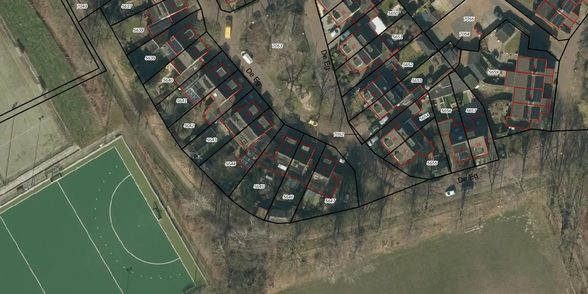 Het perceel waarop De Eg 38 staat heeft een oppervlakte van 353 m². Dit is een groot perceel. De perceeloppervlakte wordt geregistreerd door het Kadaster. Gedetailleerde informatie over de maten van dit perceel kunt u vinden in het rapport Kadastrale kaart met maatvoering van De Eg 38.