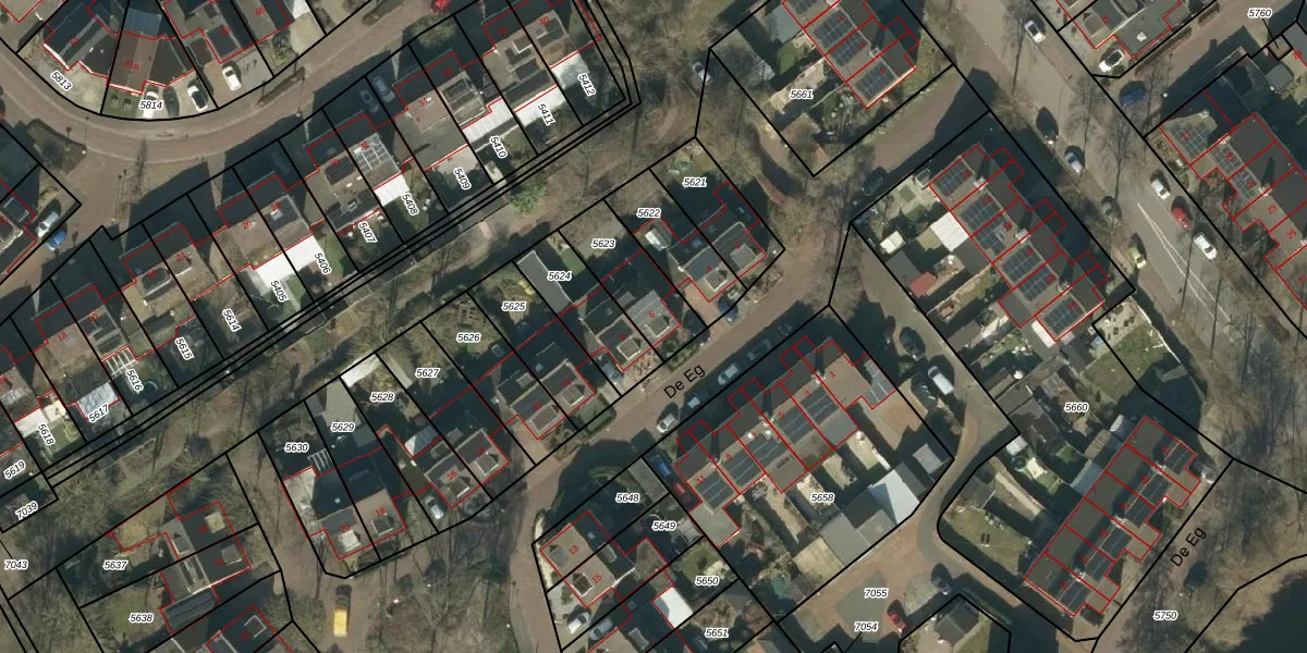 Het perceel waarop De Eg 6 staat heeft een oppervlakte van 216 m². Dit is een middelgroot perceel. De perceeloppervlakte wordt geregistreerd door het Kadaster. Gedetailleerde informatie over de maten van dit perceel kunt u vinden in het rapport Kadastrale kaart met maatvoering van De Eg 6.