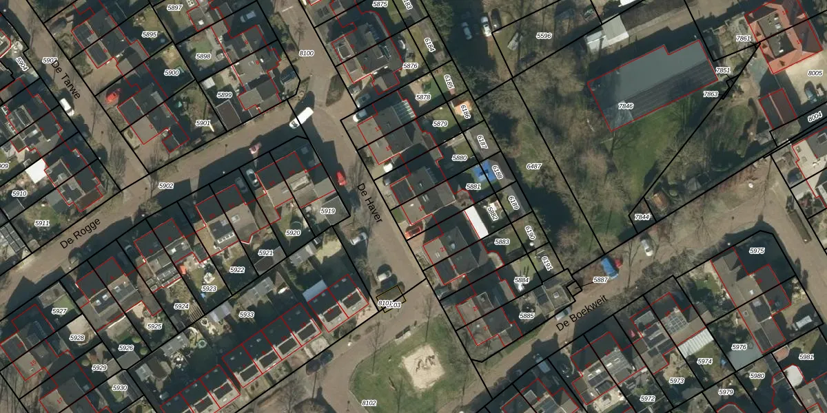Het perceel waarop De Haver 19 staat heeft een oppervlakte van 202 m². Dit is een middelgroot perceel. De perceeloppervlakte wordt geregistreerd door het Kadaster. Gedetailleerde informatie over de maten van dit perceel kunt u vinden in het rapport Kadastrale kaart met maatvoering van De Haver 19.