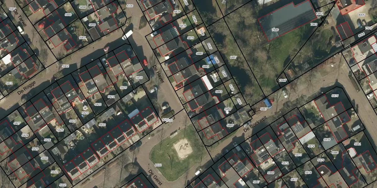 Het perceel waarop De Haver 21 staat heeft een oppervlakte van 202 m². Dit is een middelgroot perceel. De perceeloppervlakte wordt geregistreerd door het Kadaster. Gedetailleerde informatie over de maten van dit perceel kunt u vinden in het rapport Kadastrale kaart met maatvoering van De Haver 21.