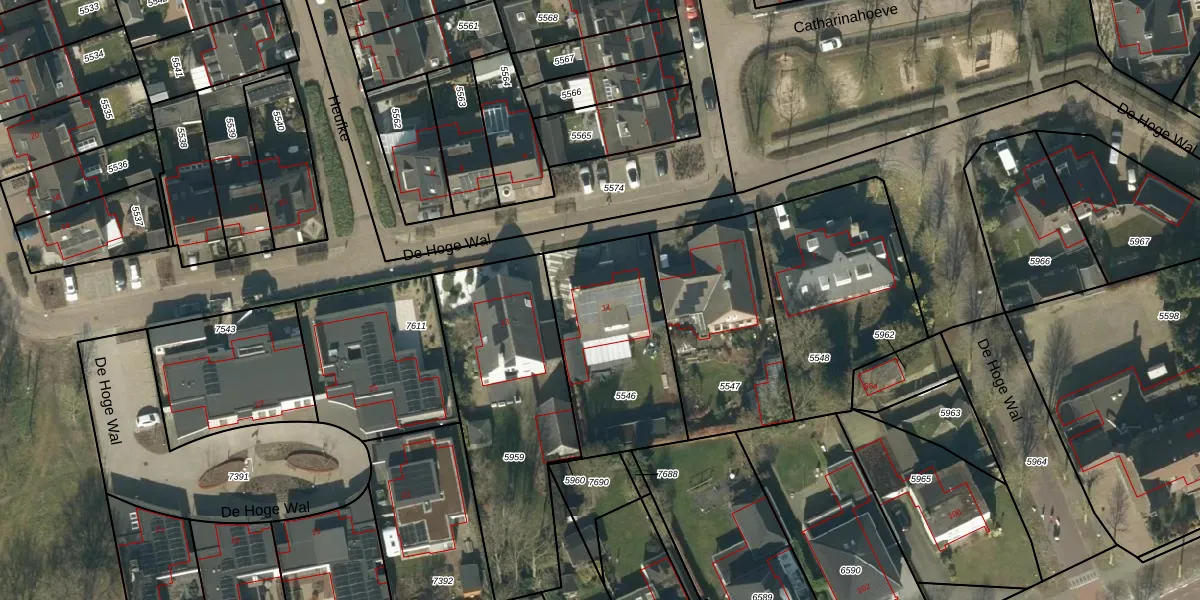 De Hoge Wal 11 is gelegen op kadastraal perceel HEE02A5546. Deze kadastrale aanduiding is uniek en wordt gebruikt door het Kadaster om eigendomsrechten en andere zakelijke rechten vast te leggen. Het perceel maakt onderdeel uit van de kadastrale gemeente Heesch.