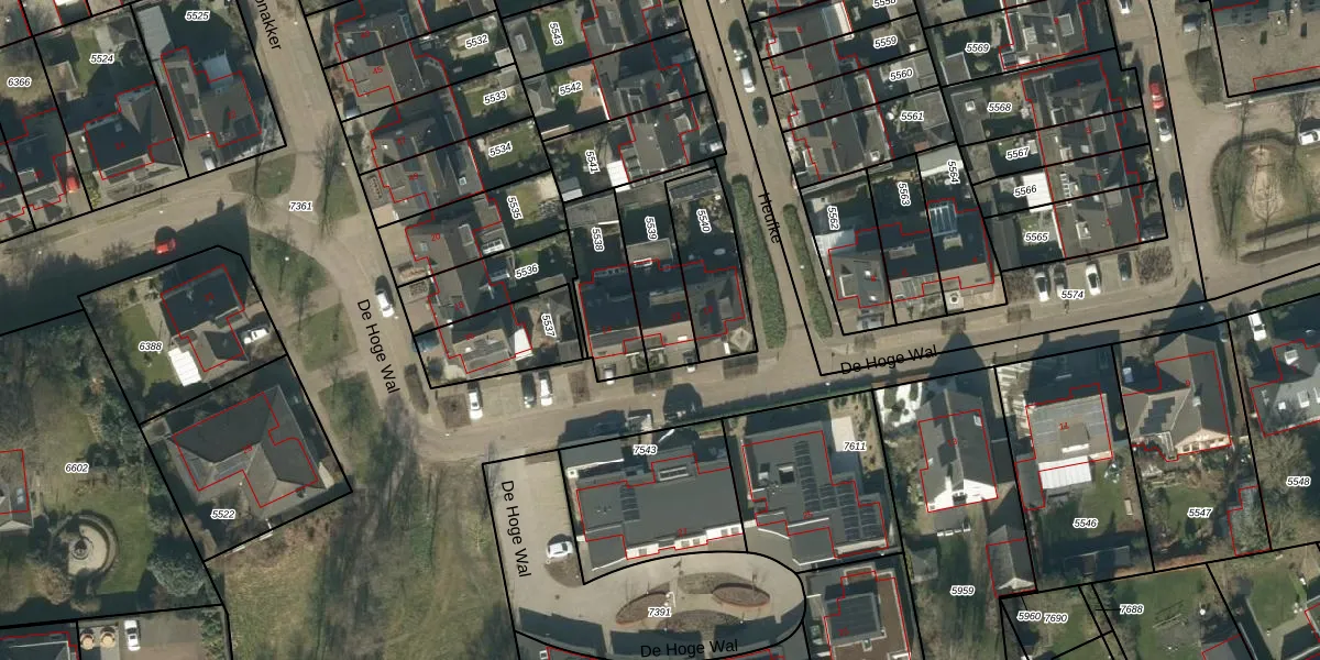 De Hoge Wal 12 is gelegen op kadastraal perceel HEE02A5539. Deze kadastrale aanduiding is uniek en wordt gebruikt door het Kadaster om eigendomsrechten en andere zakelijke rechten vast te leggen. Het perceel maakt onderdeel uit van de kadastrale gemeente Heesch.