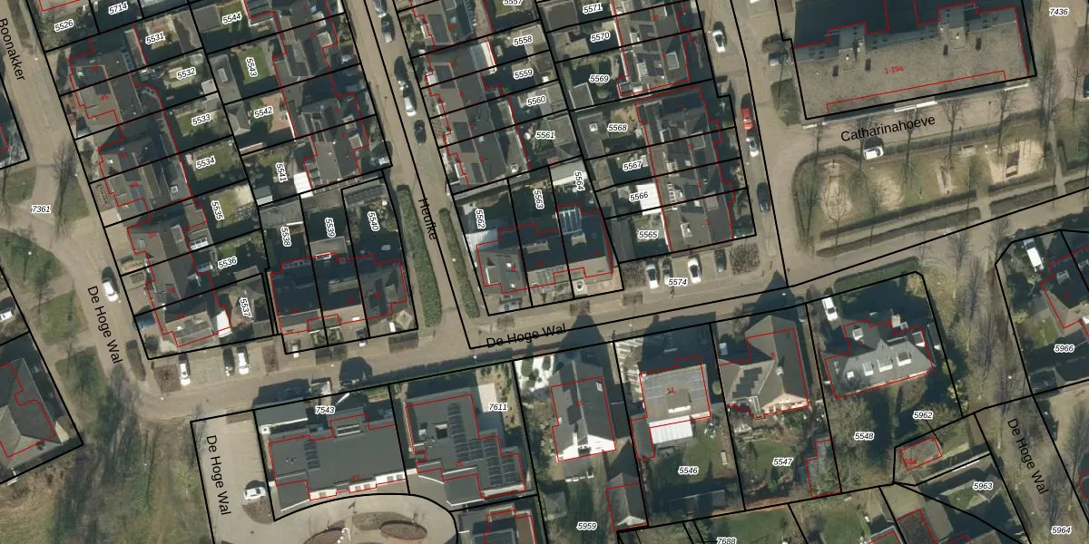 De Hoge Wal 6 is gelegen op kadastraal perceel HEE02A5563. Deze kadastrale aanduiding is uniek en wordt gebruikt door het Kadaster om eigendomsrechten en andere zakelijke rechten vast te leggen. Het perceel maakt onderdeel uit van de kadastrale gemeente Heesch.