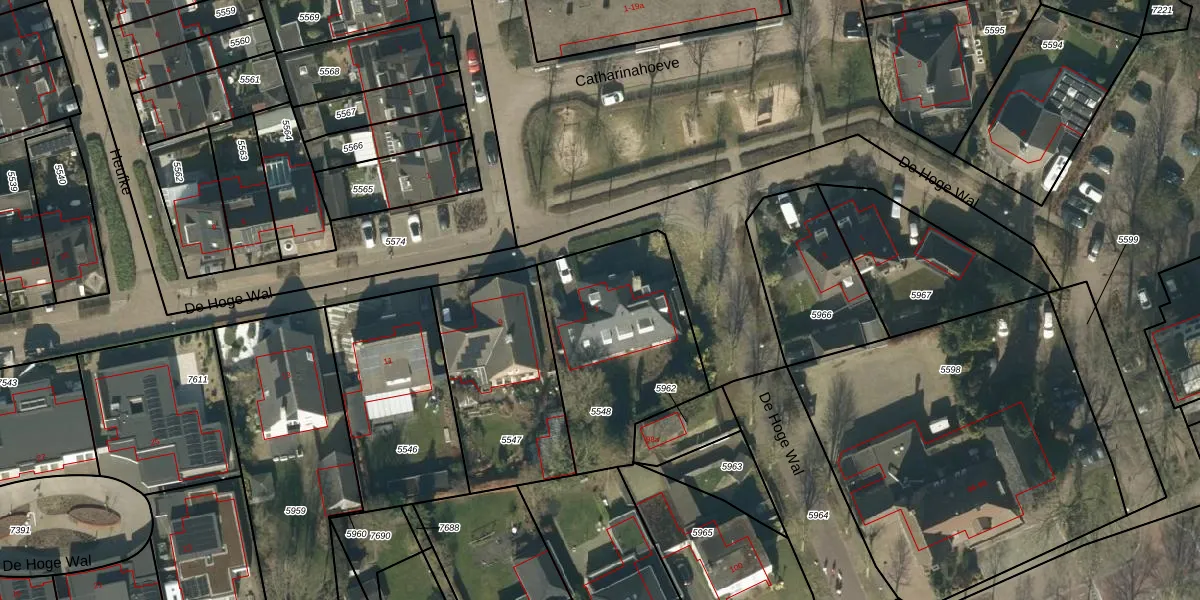 De Hoge Wal 7 is gelegen op kadastraal perceel HEE02A5548. Deze kadastrale aanduiding is uniek en wordt gebruikt door het Kadaster om eigendomsrechten en andere zakelijke rechten vast te leggen. Het perceel maakt onderdeel uit van de kadastrale gemeente Heesch.
