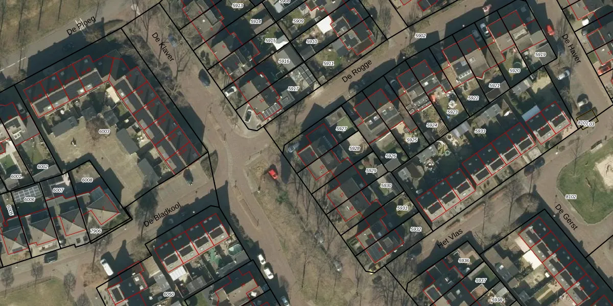 Gebruik de zoekbalk of klik op een perceel voor informatie over de adressen binnen dit perceel.