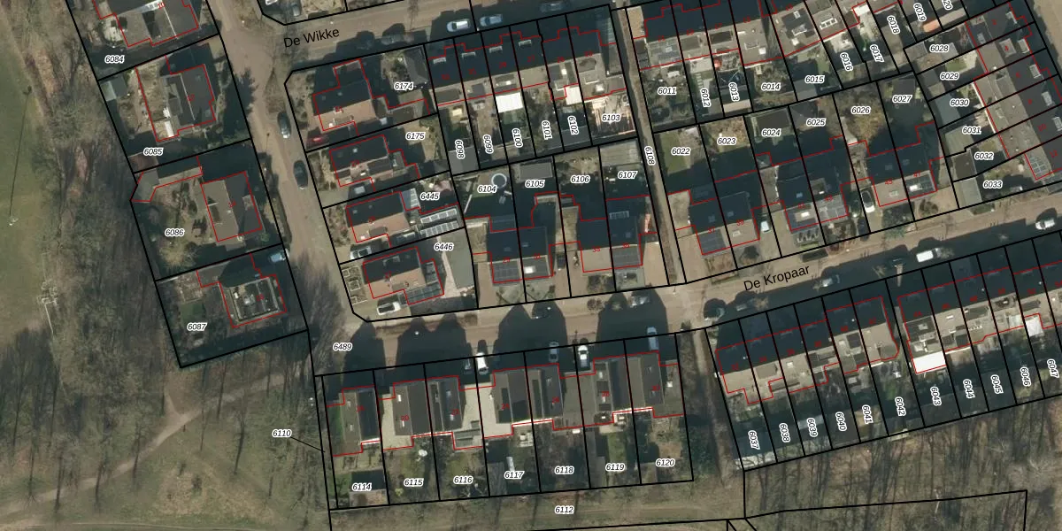 Gebruik de zoekbalk of klik op een perceel voor informatie over de adressen binnen dit perceel.