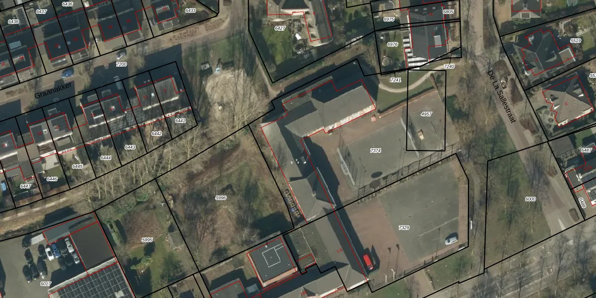Het perceel waarop De La Sallestraat 3 staat heeft een oppervlakte van 7773 m². Dit is een zeer groot perceel. De perceeloppervlakte wordt geregistreerd door het Kadaster. Gedetailleerde informatie over de maten van dit perceel kunt u vinden in het rapport Kadastrale kaart met maatvoering van De La Sallestraat 3.