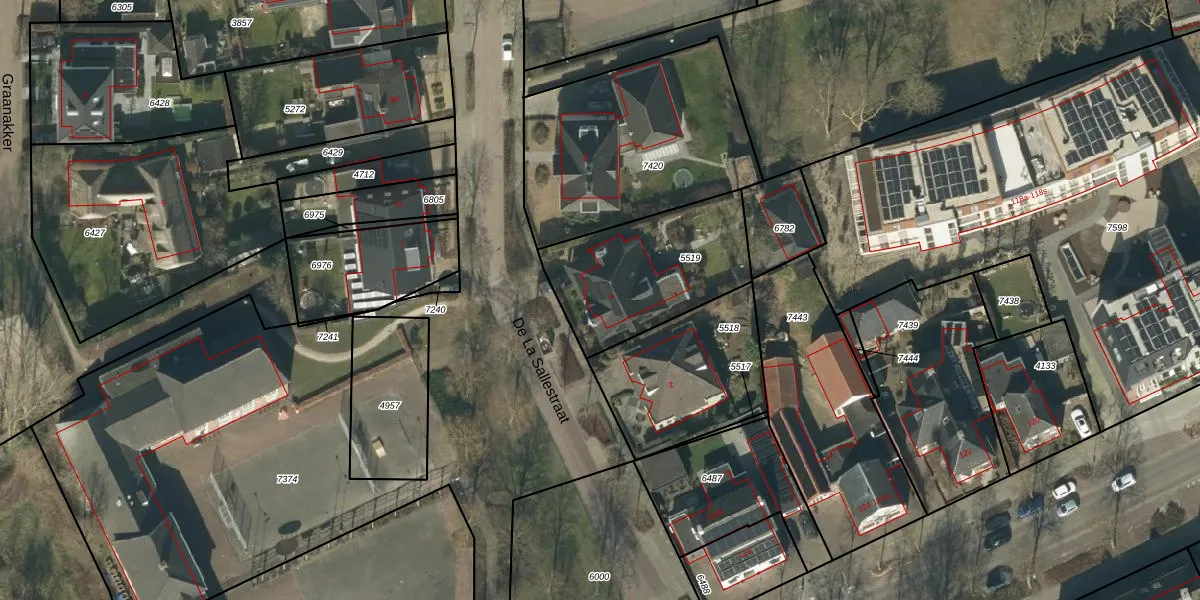 De La Sallestraat 4 is gelegen op kadastraal perceel HEE02A5519. Deze kadastrale aanduiding is uniek en wordt gebruikt door het Kadaster om eigendomsrechten en andere zakelijke rechten vast te leggen. Het perceel maakt onderdeel uit van de kadastrale gemeente Heesch.