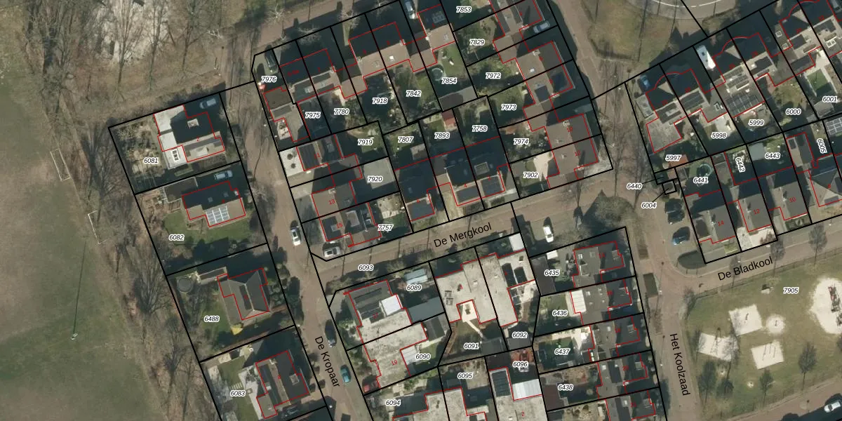 De Mergkool 6 is gelegen op kadastraal perceel HEE02B7807. Deze kadastrale aanduiding is uniek en wordt gebruikt door het Kadaster om eigendomsrechten en andere zakelijke rechten vast te leggen. Het perceel maakt onderdeel uit van de kadastrale gemeente Heesch.