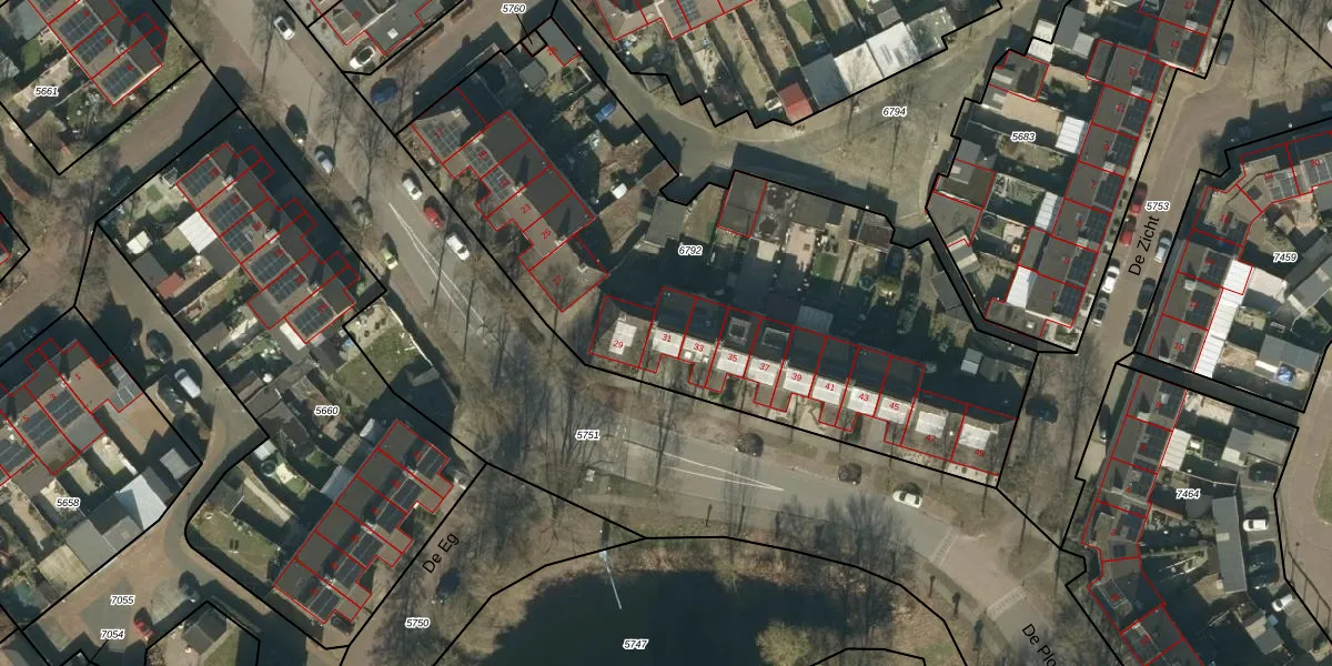 Het perceel waarop De Ploeg 31 staat heeft een oppervlakte van 2972 m². Dit is een zeer groot perceel. De perceeloppervlakte wordt geregistreerd door het Kadaster. Gedetailleerde informatie over de maten van dit perceel kunt u vinden in het rapport Kadastrale kaart met maatvoering van De Ploeg 31.