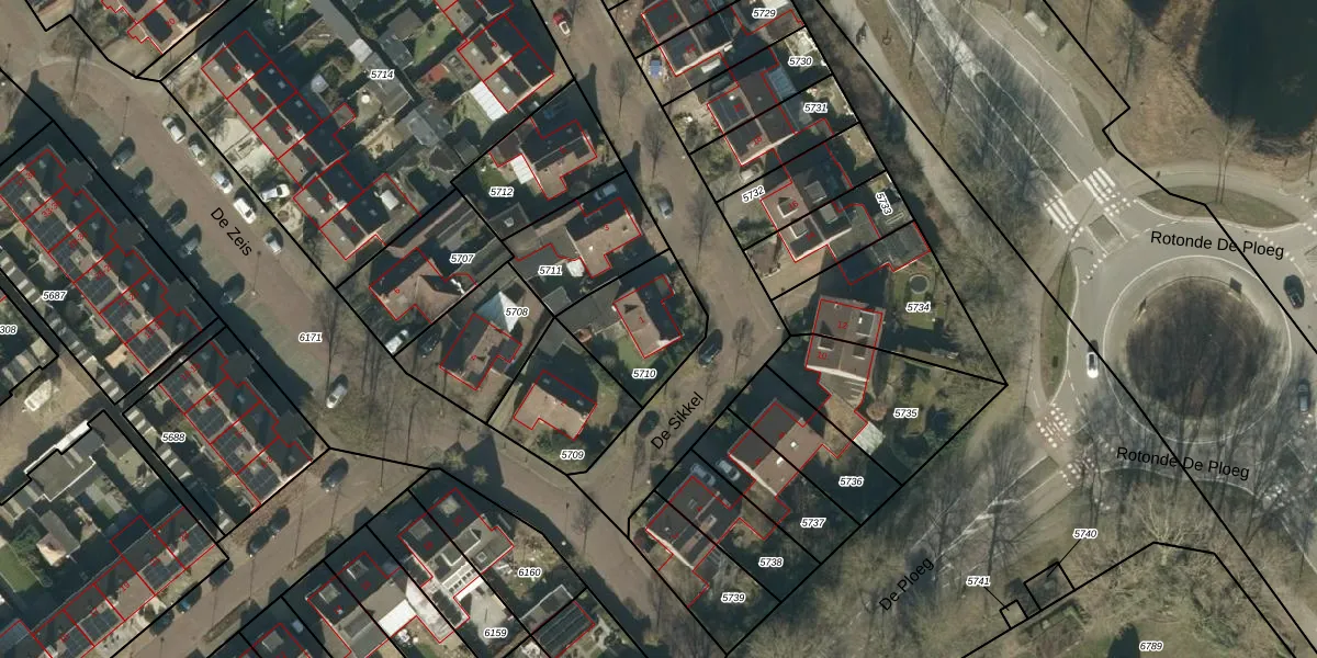Gebruik de zoekbalk of klik op een perceel voor informatie over de adressen binnen dit perceel.
