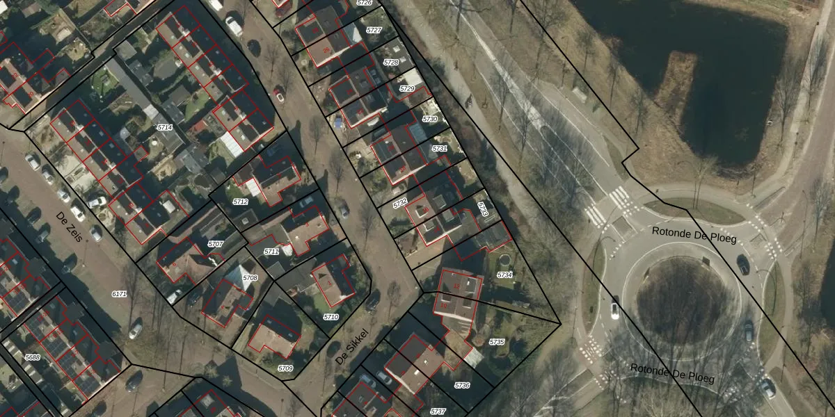 Gebruik de zoekbalk of klik op een perceel voor informatie over de adressen binnen dit perceel.