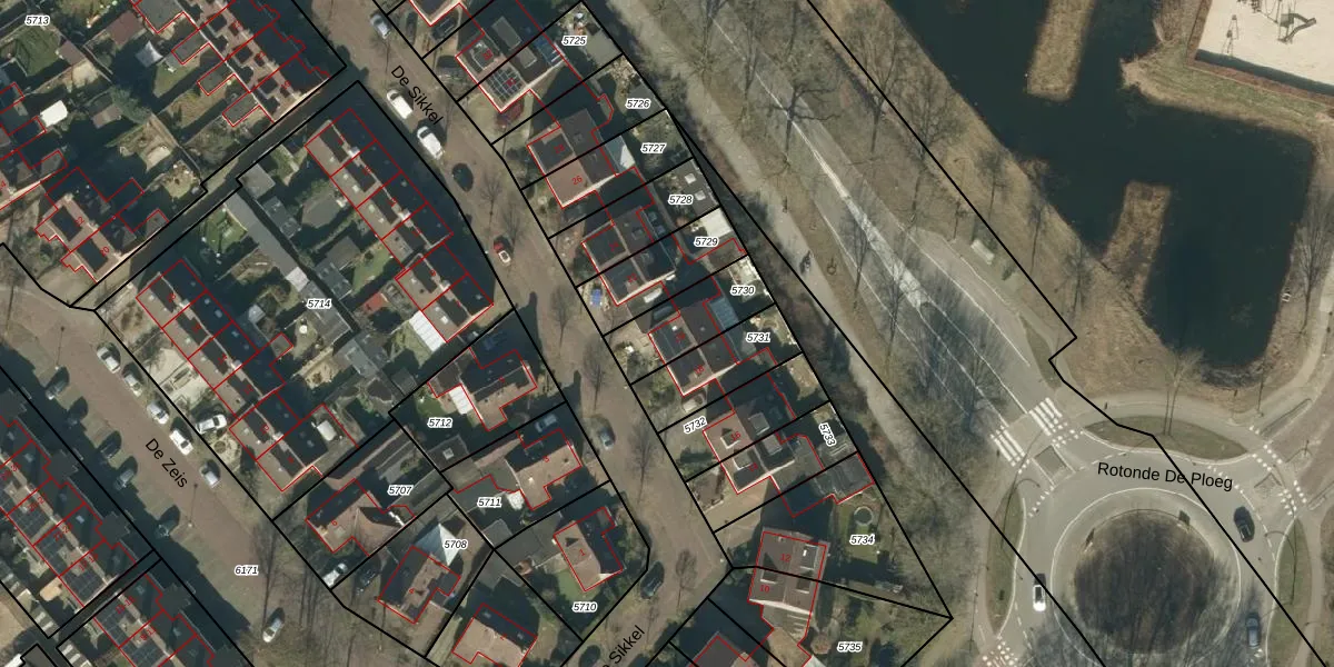 Gebruik de zoekbalk of klik op een perceel voor informatie over de adressen binnen dit perceel.