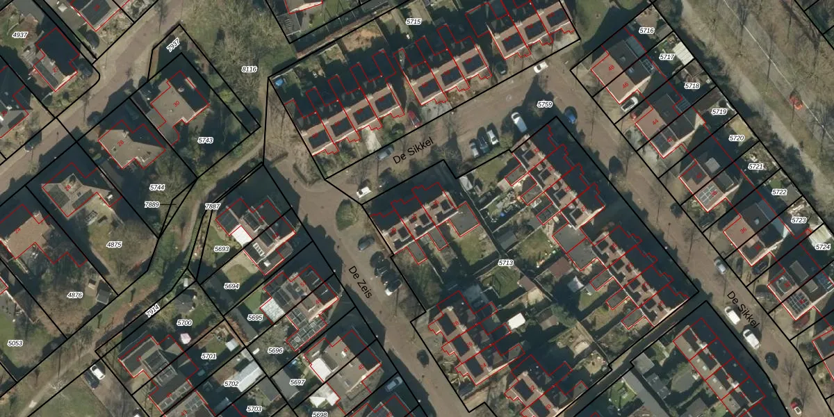 Het perceel waarop De Sikkel 37 staat heeft een oppervlakte van 3409 m². Dit is een zeer groot perceel. De perceeloppervlakte wordt geregistreerd door het Kadaster. Gedetailleerde informatie over de maten van dit perceel kunt u vinden in het rapport Kadastrale kaart met maatvoering van De Sikkel 37.