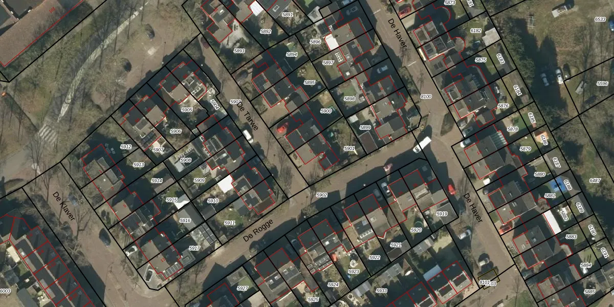 Gebruik de zoekbalk of klik op een perceel voor informatie over de adressen binnen dit perceel.