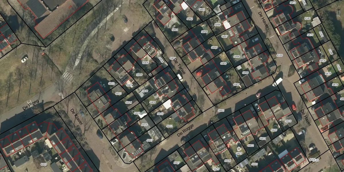 De Tarwe 5 is gelegen op kadastraal perceel HEE02B5909. Deze kadastrale aanduiding is uniek en wordt gebruikt door het Kadaster om eigendomsrechten en andere zakelijke rechten vast te leggen. Het perceel maakt onderdeel uit van de kadastrale gemeente Heesch.