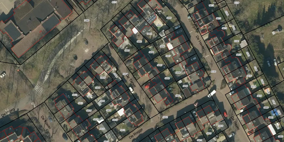 De Tarwe 6 is gelegen op kadastraal perceel HEE02B5895. Deze kadastrale aanduiding is uniek en wordt gebruikt door het Kadaster om eigendomsrechten en andere zakelijke rechten vast te leggen. Het perceel maakt onderdeel uit van de kadastrale gemeente Heesch.