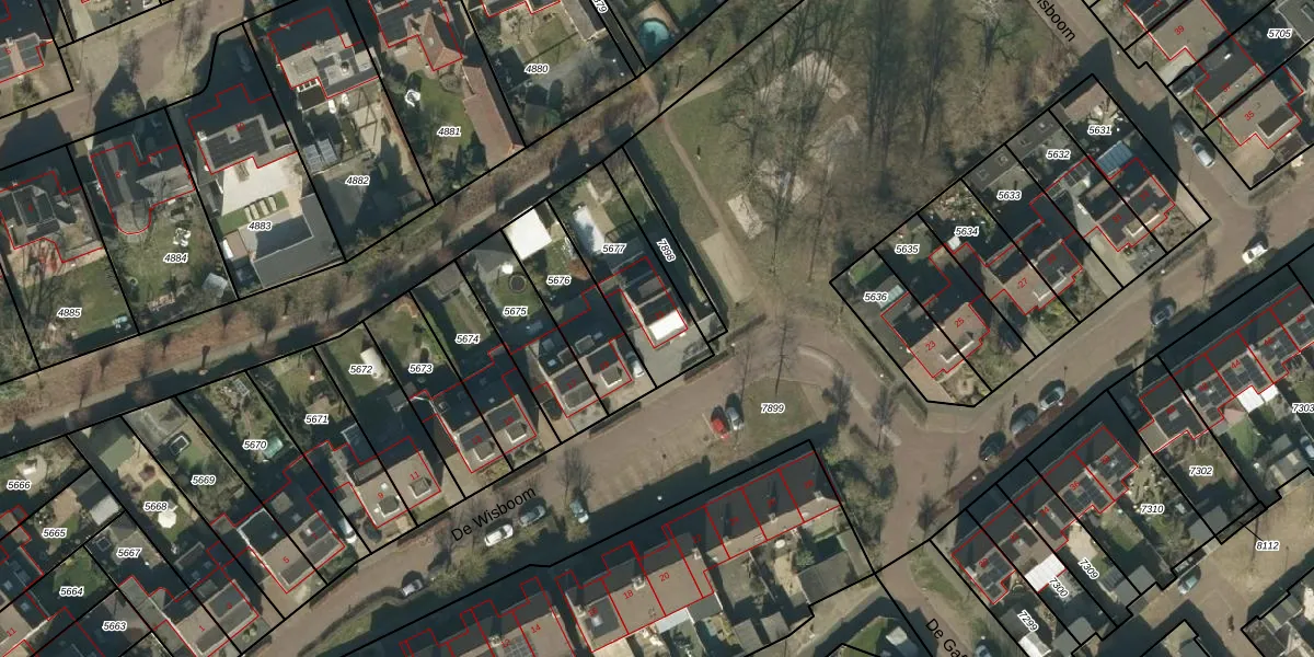 Het perceel waarop De Wisboom 21 staat heeft een oppervlakte van 340 m². Dit is een groot perceel. De perceeloppervlakte wordt geregistreerd door het Kadaster. Gedetailleerde informatie over de maten van dit perceel kunt u vinden in het rapport Kadastrale kaart met maatvoering van De Wisboom 21.