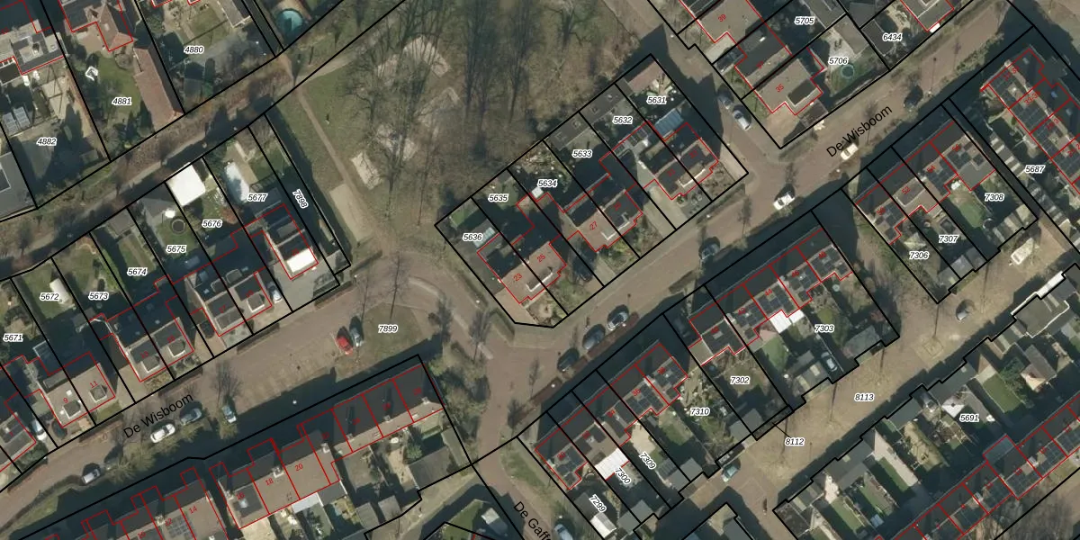 Het perceel waarop De Wisboom 25 staat heeft een oppervlakte van 242 m². Dit is een middelgroot perceel. De perceeloppervlakte wordt geregistreerd door het Kadaster. Gedetailleerde informatie over de maten van dit perceel kunt u vinden in het rapport Kadastrale kaart met maatvoering van De Wisboom 25.