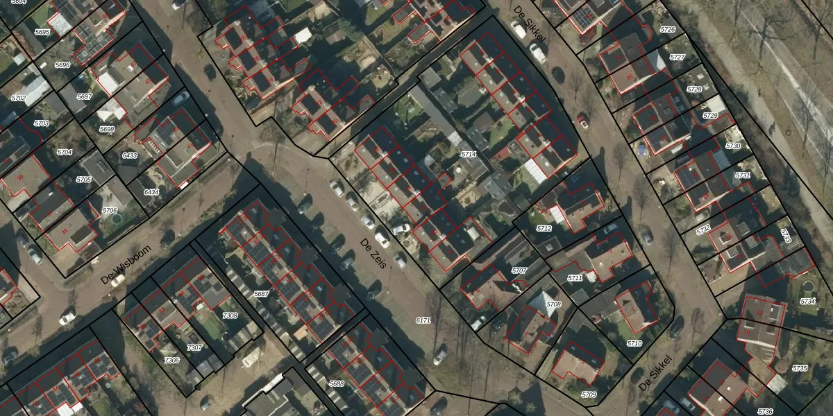 Het perceel waarop De Zeis 12 staat heeft een oppervlakte van 2119 m². Dit is een zeer groot perceel. De perceeloppervlakte wordt geregistreerd door het Kadaster. Gedetailleerde informatie over de maten van dit perceel kunt u vinden in het rapport Kadastrale kaart met maatvoering van De Zeis 12.