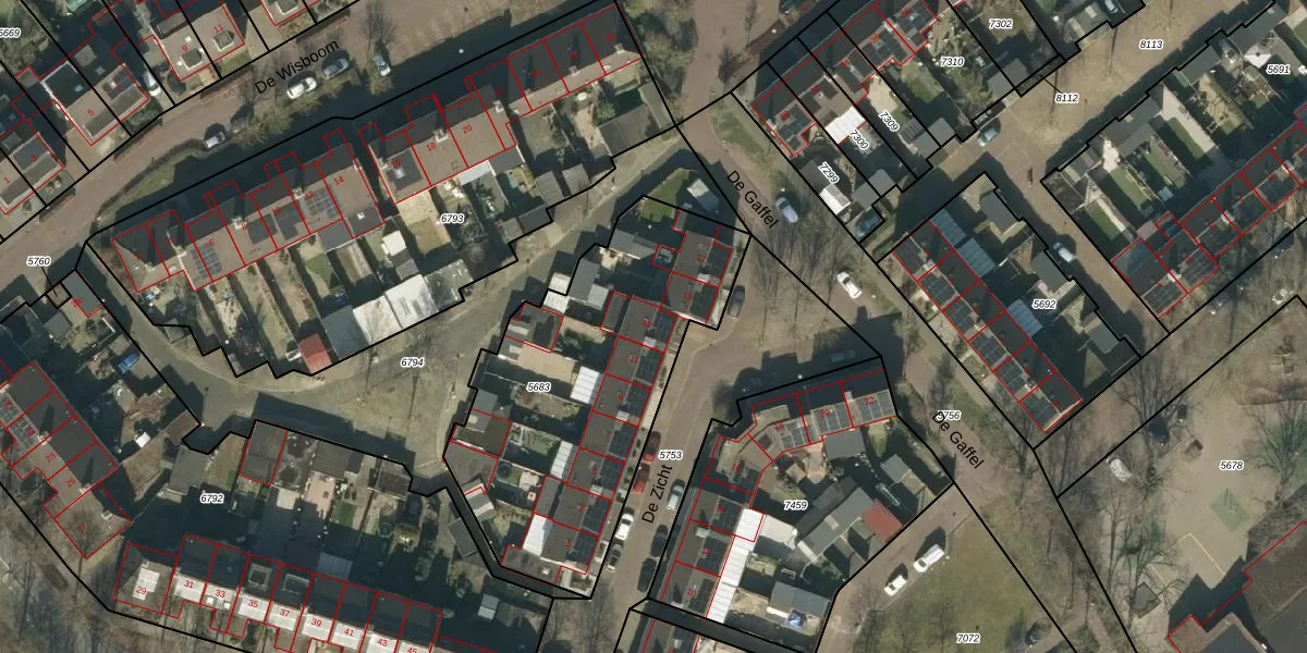 Het perceel waarop De Zicht 13 staat heeft een oppervlakte van 1448 m². Dit is een zeer groot perceel. De perceeloppervlakte wordt geregistreerd door het Kadaster. Gedetailleerde informatie over de maten van dit perceel kunt u vinden in het rapport Kadastrale kaart met maatvoering van De Zicht 13.