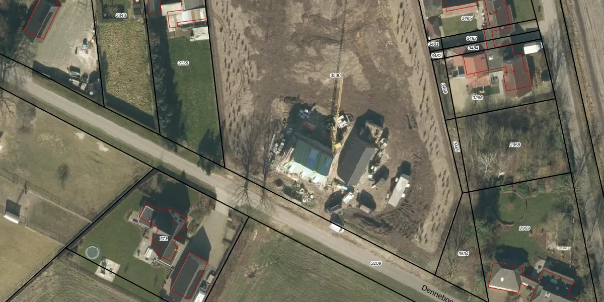 Het perceel waarop Denneboomstraat 1-b staat heeft een oppervlakte van 6933 m². Dit is een zeer groot perceel. De perceeloppervlakte wordt geregistreerd door het Kadaster. Gedetailleerde informatie over de maten van dit perceel kunt u vinden in het rapport Kadastrale kaart met maatvoering van Denneboomstraat 1-b.